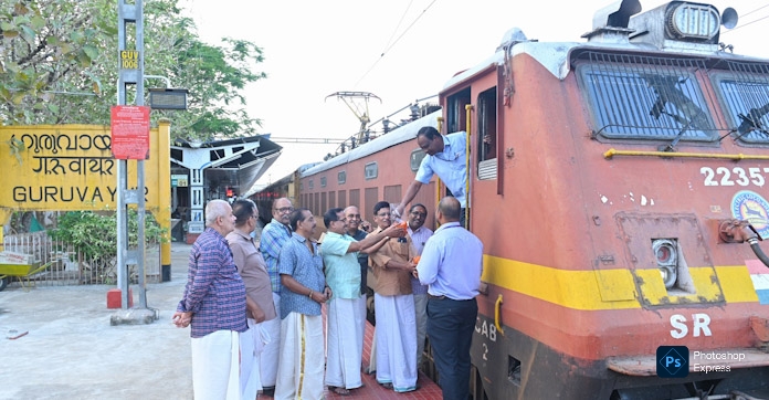 ഗുരുവായൂർ–തൃശൂർ പാസഞ്ചർ ട്രെയിൻ സർവ്വീസ് പുനരാരംഭിച്ചു; ദൃശ്യ ഗുരുവായൂർ സ്റ്റേഷനിൽ മധുരവിതരണത്തോടെ സ്വാഗതം