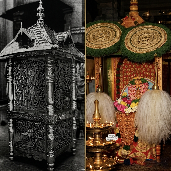 ഗുരുവായൂർ: ഗുരുവായൂർ ക്ഷേത്രോത്സവത്തിന്റെ മഹിമയെ രാജകീയ ഭംഗിയിൽ ഉയർത്തുന്ന പ്രധാന ആചാരങ്ങളിലൊന്നാണ് ഉത്സവമൂർത്തിയായ ഗുരുവായൂരപ്പനെ എഴുന്നള്ളിച്ച് വയ്ക്കുന്ന പഴുക്കാമണ്ഡപം. ഇന്ന് ഭക്തജനങ്ങളെ വിസ്മയിപ്പിക്കുന്ന ഈ സ്വർണ്ണംപൊതിഞ്ഞ മണ്ഡപത്തിന് പിന്നിൽ പതിറ്റാണ്ടുകൾ പഴക്കമുള്ള ഒരു അപൂർവ ചരിത്രവും ഭക്തിയും ഒളിഞ്ഞുകിടക്കുന്നു.